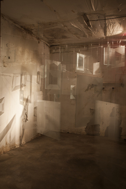 그것은 어떤 건축이 때때로 그러하듯이 ‘역동적인 사건 공간’(베르나르 추미)으로 고양된다. 대부분 마당이 없는 현대의 주거방식과 달리 옛집에는 작은 안마당이 있는데, 작가는 그곳에 복잡한 문양으로 오려진 아크릴 하프미러를 설치하고, 대형파리(파리대왕)를 지붕에 매달아 놓아 반사 빛이 어른거리게 한다. 밝은 반사면들은 공중과 바닥에서 햇빛과 바람에 기대어 춤을 춘다. 안마당에 접한 공간에는 창, 문, 벽, 기둥, 계단 같은 건축적 이미지가 새겨진 투명패널들이 풍경처럼 매달려 있다. 공기와 빛의 흐름에 따라 시시각각 달라지는 다양한 각도의 조합은 현실, 그리고 가상공간 속에서 복잡한 시각적 메아리를 만든다. 패널 안의 이미지는 건축적 요소들이기에 빛은 물론 그림자까지 가세한 공간의 산란효과는 위상학적 변환의 장이 된다. 그것들은 또한 공간적으로 시연되는 영화 같다. 각각의 단면들을 넘어서 지속의 체험을 야기하는 그것들은 영화처럼 운동을 통해서 이미지를 파생시킨다.